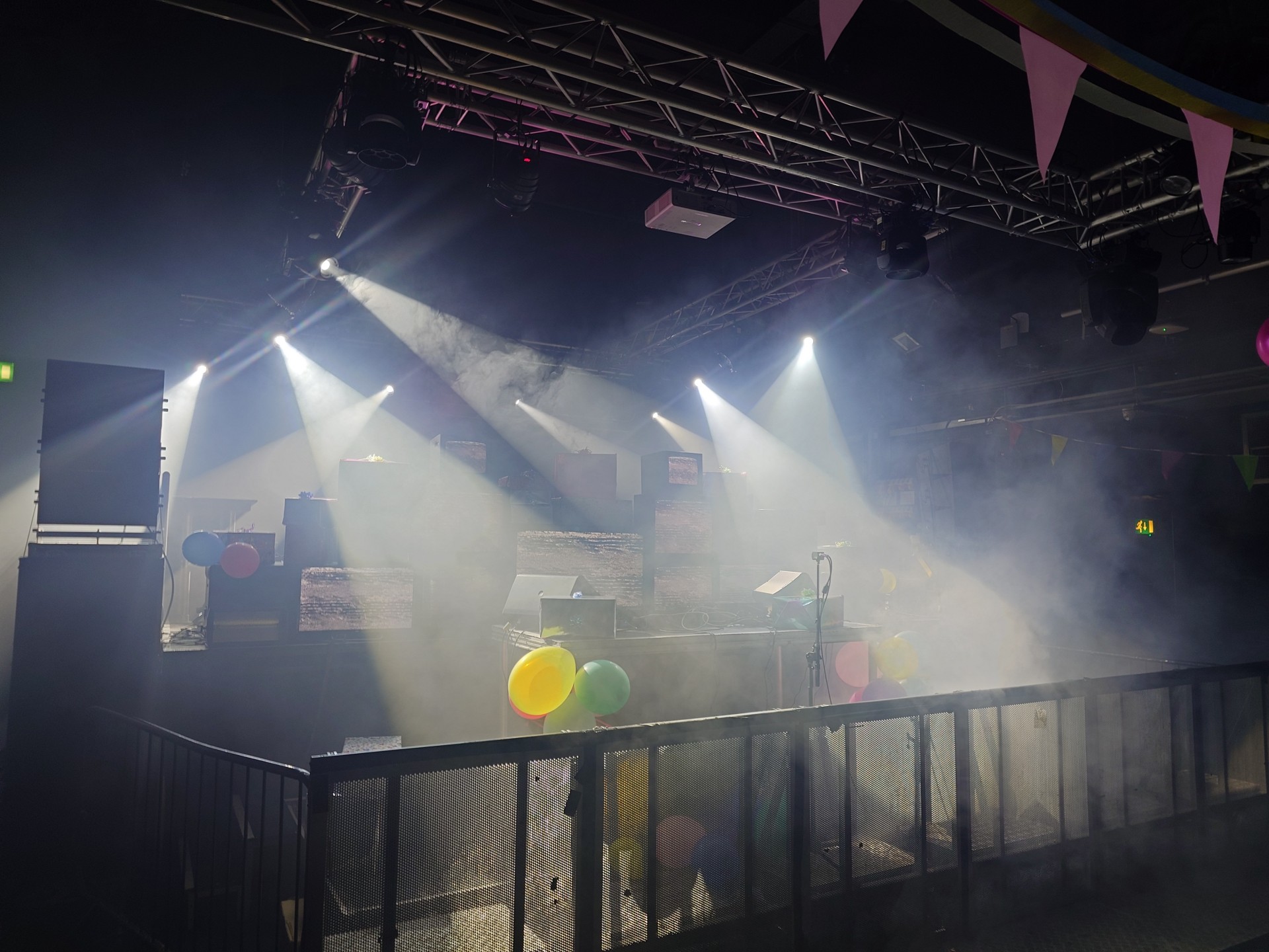 Picture by Ada Fuge of The Assembly Hall stage design for Subcity Radio's 30th Birthday Party at the Art School